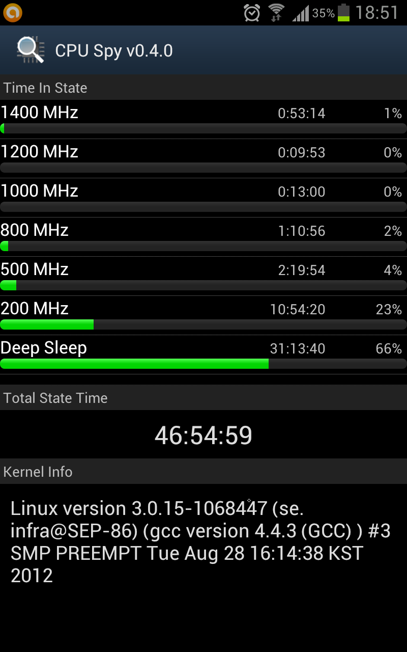نرم افزار CPU Spy نشون میده CPU گوشیتون با چه فرکانسهایی به چه مدت کار کرده.